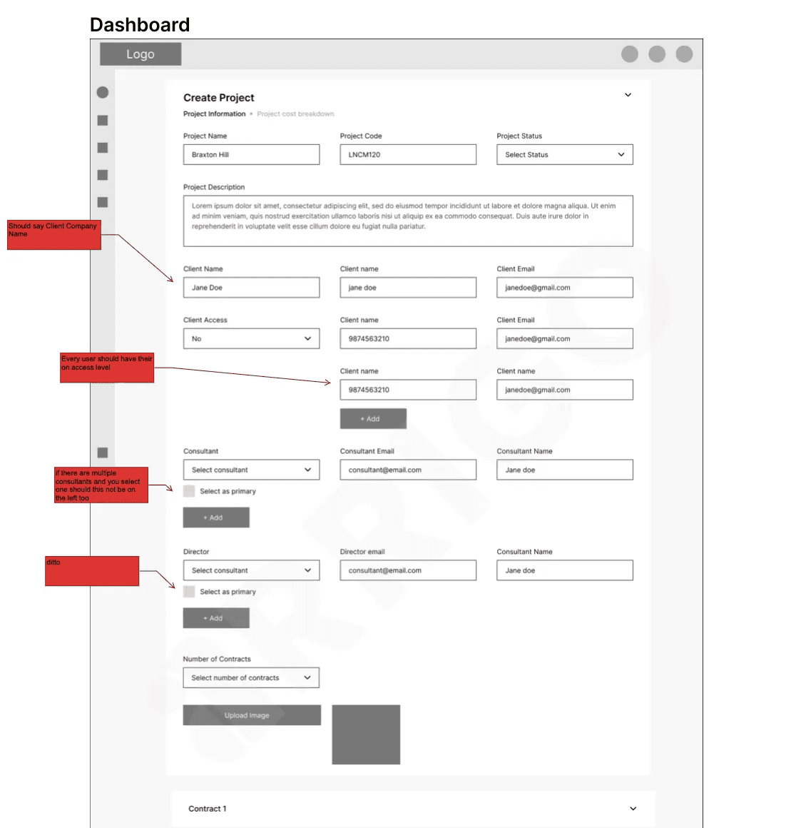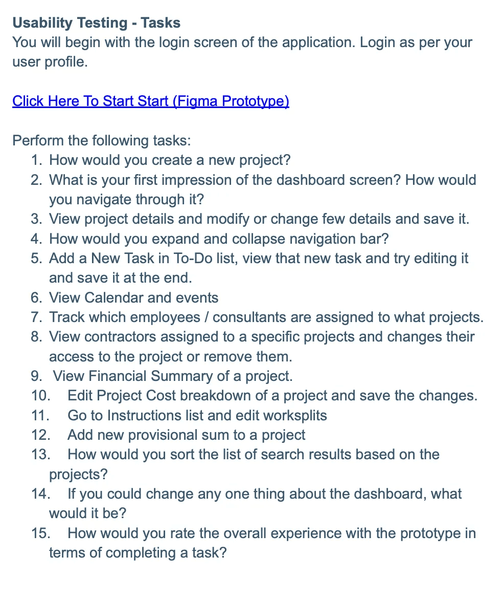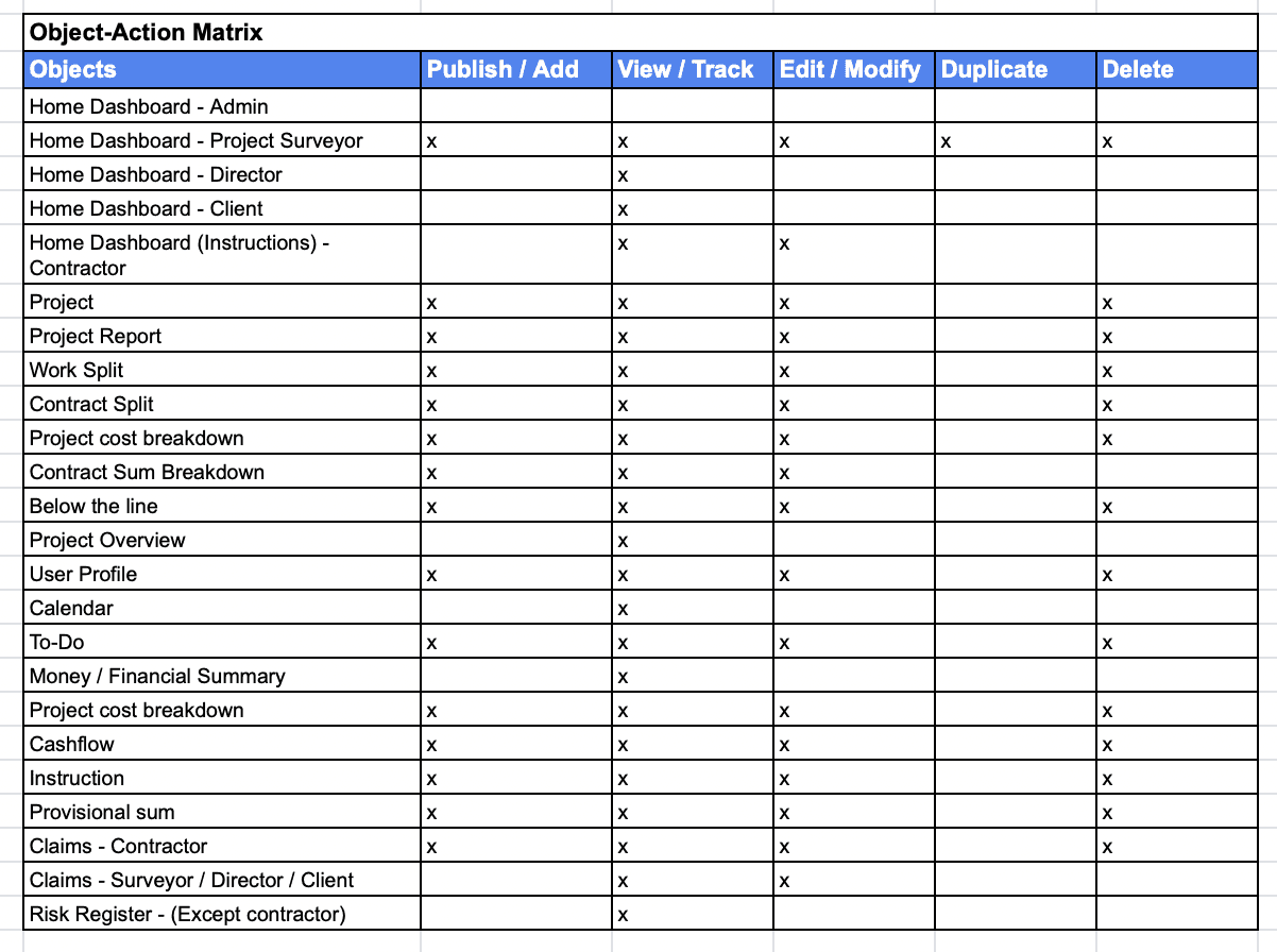 I began by understanding the needs of five key user roles: Director, Admin, Consultant, Contractor, and Client. Through stakeholder discussions and analysis, I identified pain points and mapped user needs to system capabilities.