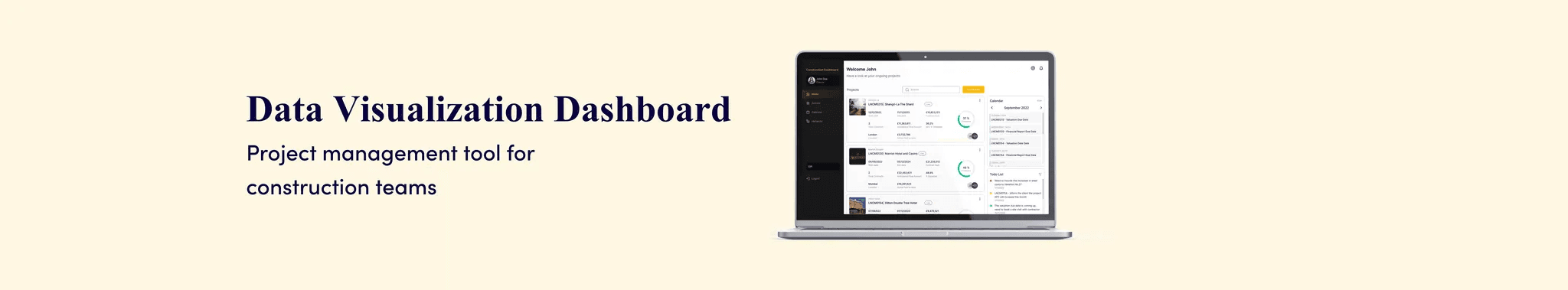 A construction management dashboard designed to help organizations track, manage, and prioritize projects through a simple, intuitive web interface. The platform enables visibility across roles—allowing stakeholders, consultants, contractors, and admins to access project data based on permissions, improving coordination and productivity.